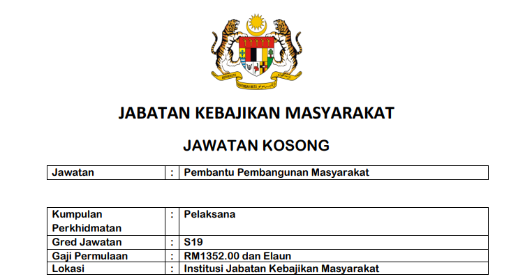 Jawatan Kosong Pembantu Pembangunan Masyarakat Di Jabatan Kebajikan Masyarakat Jkm Jobcari Com Jawatan Kosong Terkini