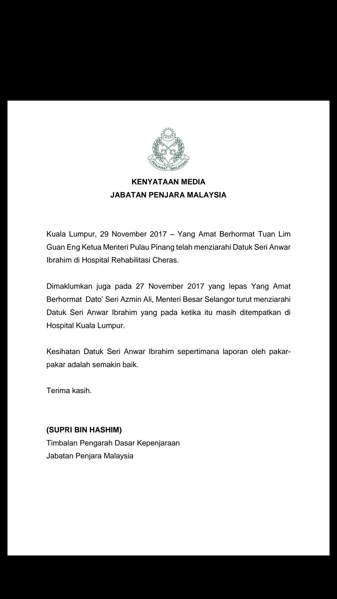 Penjara Malaysia On Twitter Kenyataan Media Jabatan Penjara Malaysia 29 11 2017 Kdnputrajaya Friendsofkdn Alwi Ibrahim59 Kppenjara Kdnclan Umonline Bernamadotcom Bharianmy Hmetromy Nst Online Thes Https T Co Rwcdtxf6pg