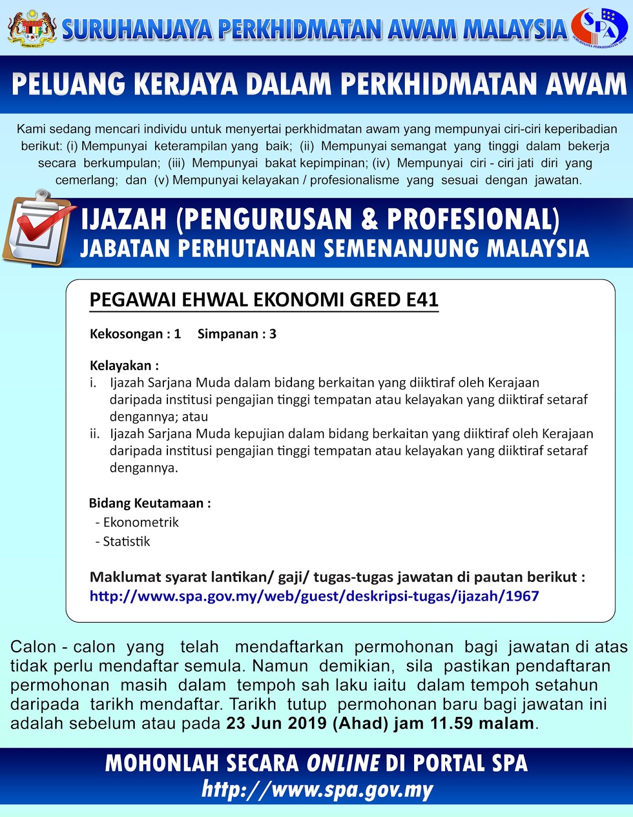 Iklan Jawatan Kosong Jabatan Perhutanan Semenanjung Malaysia 23 Jun 2019 Ekerjaa
