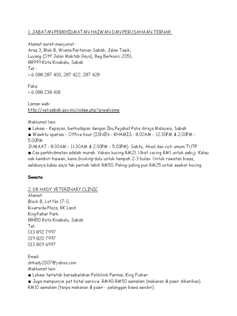 Klinik Haiwan Jabatan Perkhidmatan Haiwan Dan Perusahaan Ternak Daerah Keningau Peti Surat 48