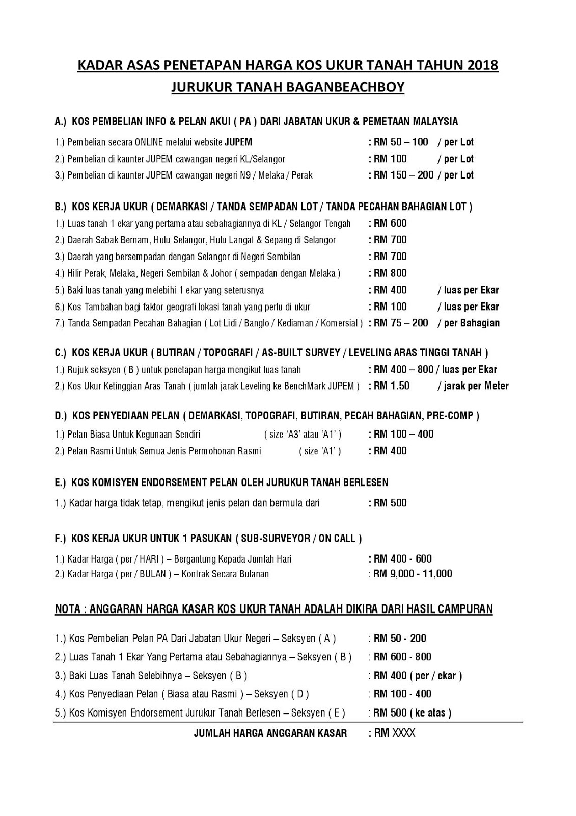 Jurukur Tanah Bagan Tempahan Perkhidmatan
