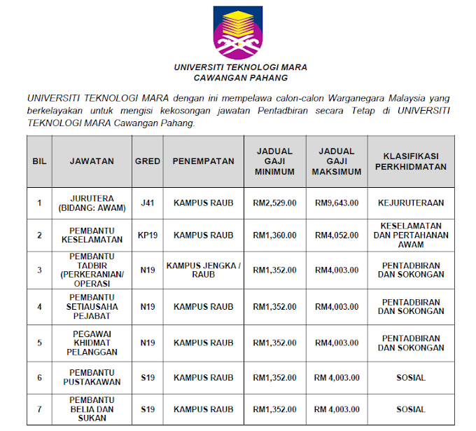 Jawatan Kosong Terkini Di Universiti Teknologi Mara Uitm Appjawatan Malaysia