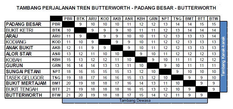 Jadual Dan Tambang Komuter Butterworth Padang Besar Bermula 1 Januari 2016