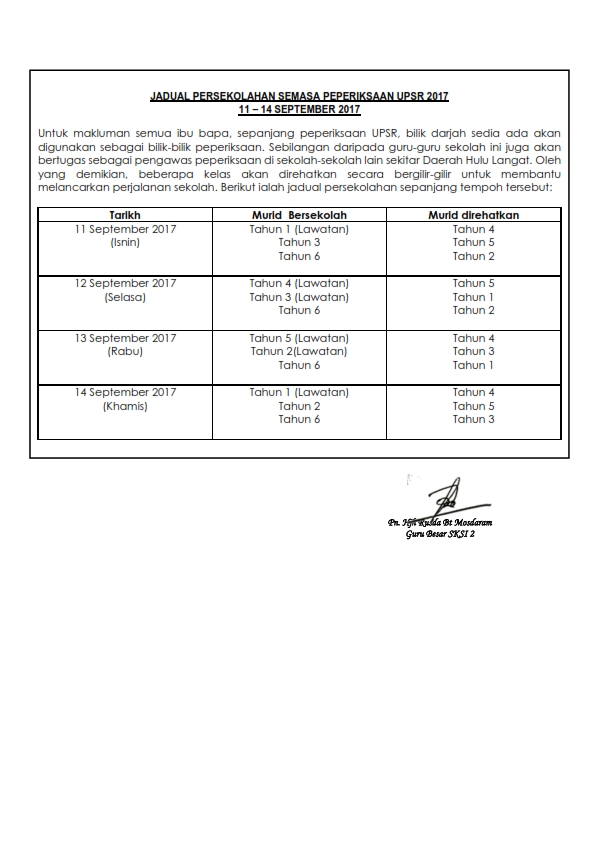Sk Saujana Impian 2 Kajang Jadual Persekolahan Semasa Peperiksaan Upsr 2017