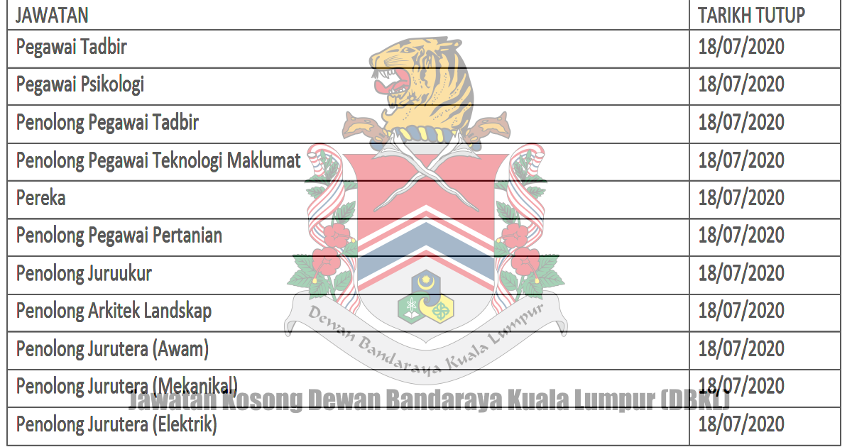 Jawatan Kosong Dewan Bandaraya Kuala Lumpur Dbkl Tarikh Tutup 5 September 2020