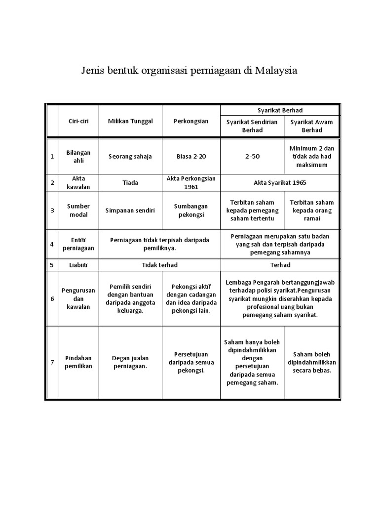 Jenis Bentuk Organisasi Perniagaan Di Malaysia