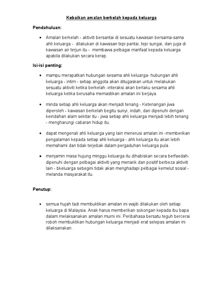 Kebaikan Amalan Berkelah Kepada Keluarga Docx Kebaikan Amalan Berkelah Kepada Keluarga Amalan Berkelah Merujuk Aktiviti Bersantai Di Sesuatu Kawasan Course Hero
