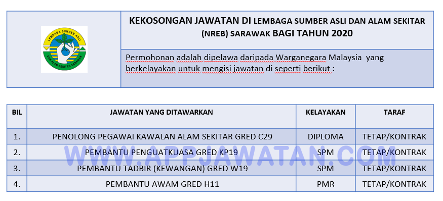 Jawatan Kosong Di Lembaga Sumber Asli Dan Alam Sekitar Nreb Sarawak Appkerja Malaysia