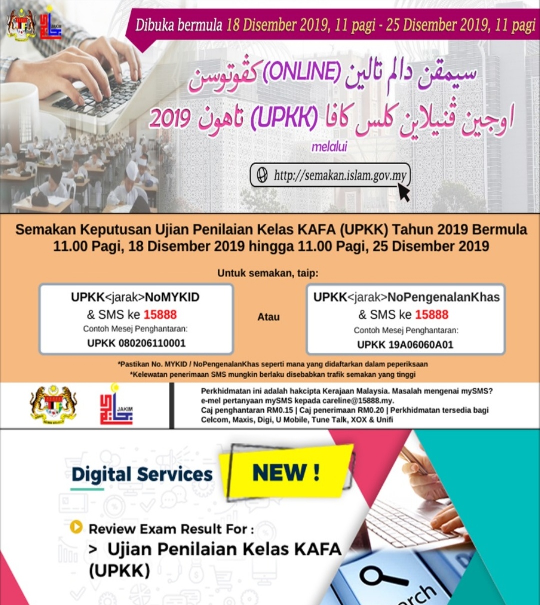 Semakan Keputusan Upkk Kafa 2019 Secara Online Dan Sms
