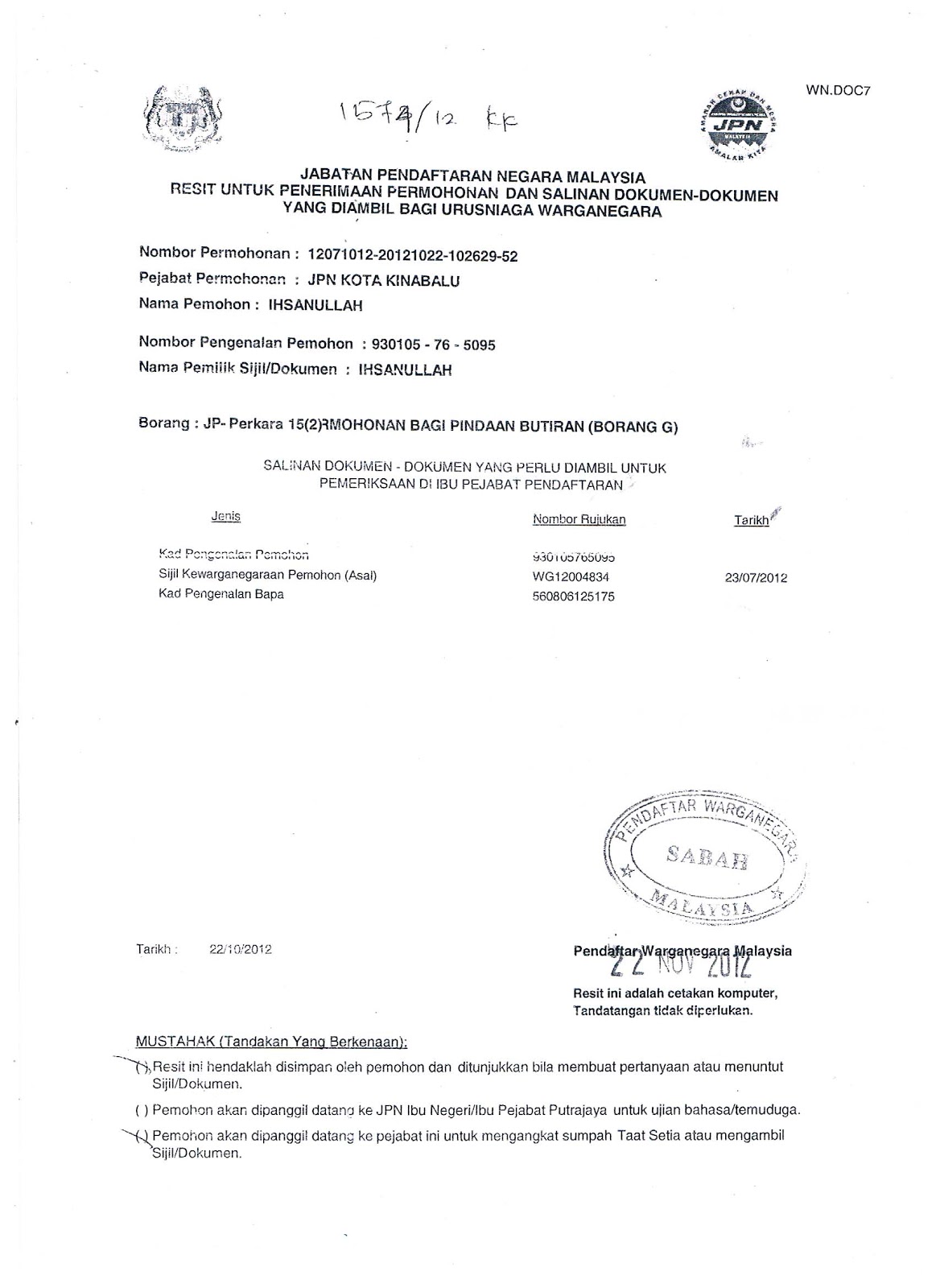 Jabatan Pendaftaran Negara Putrajaya Bahagian Kewarganegaraan