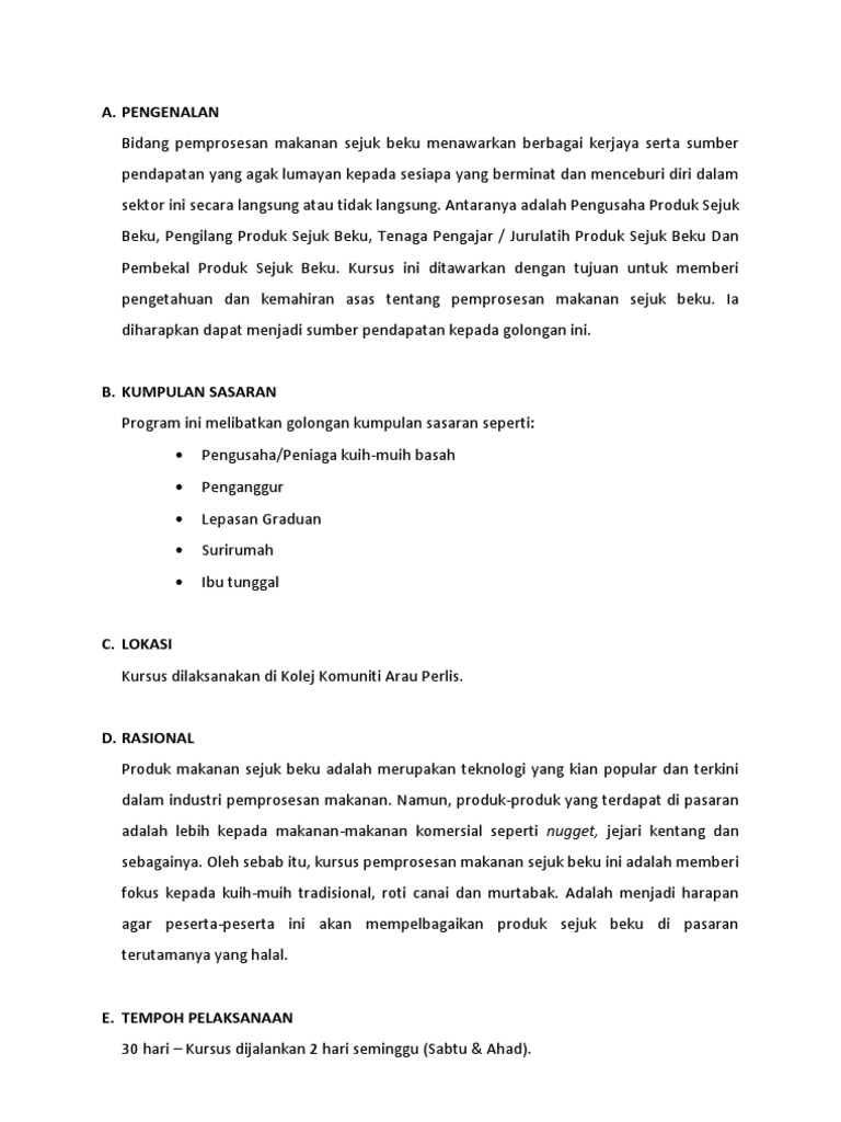 Kursus Makanan Sejuk Beku Programusahawan Com