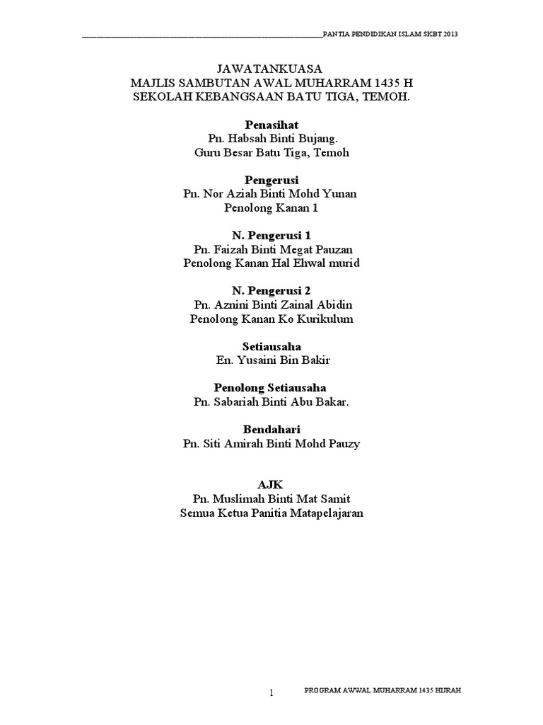 Kertas Kerja Sambutan Maal Hijrah Docx Document
