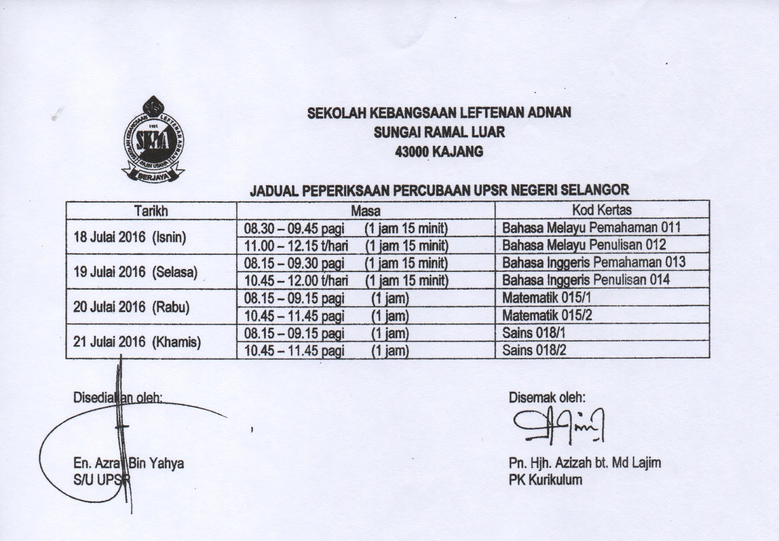 Sk Leftenan Adnan Jadual Peperiksaan Percubaan Upsr Negeri Selangor
