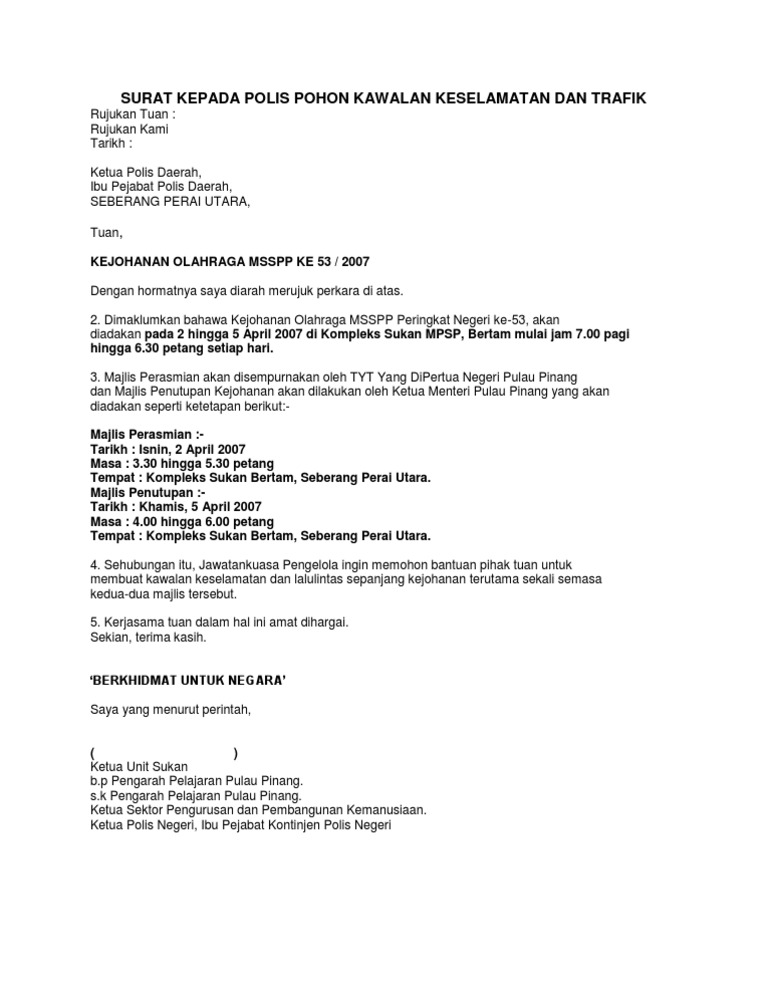 Surat Kepada Polis Pohon Kawalan Keselamatan Dan Trafik