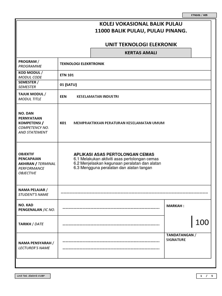 Kolej Vokasional Balik Pulau 11000 Balik Pulau Pulau Pinang Unit Teknologi Elekronik