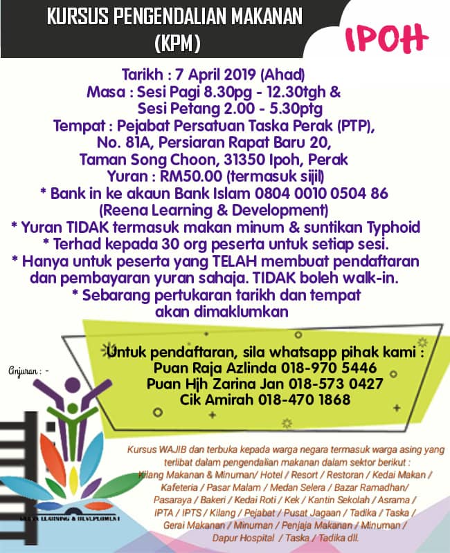Kursus Latihan Pengendali Makanan Perinion Sdn Bhd No53a Jalan Laksamana 1 Taman Ungku Tun Aminah Skudai Johor Bahru 2020