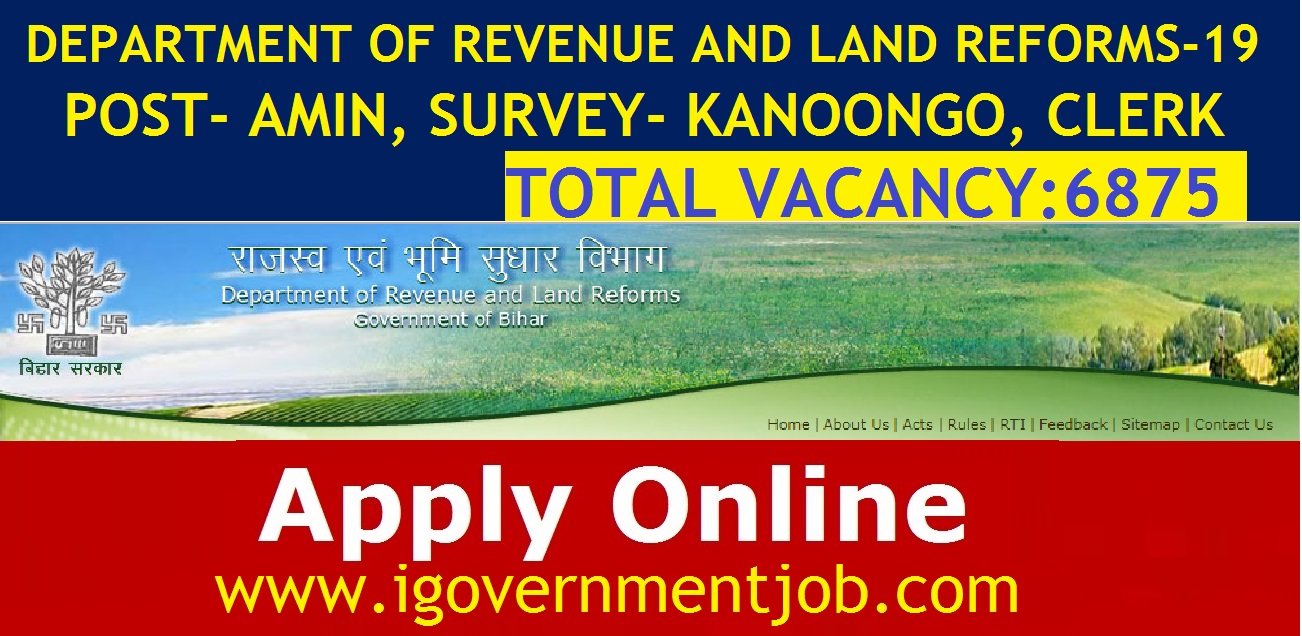 Bihar Lrc Department Of Revenue And Land Reforms Recruitment 2019 Total Vacancy 6875 Post Special Survey Amin Igovernmentjob Com Provides Latest Government Jobs Includes Admit Card Result Answer Keys Naukri